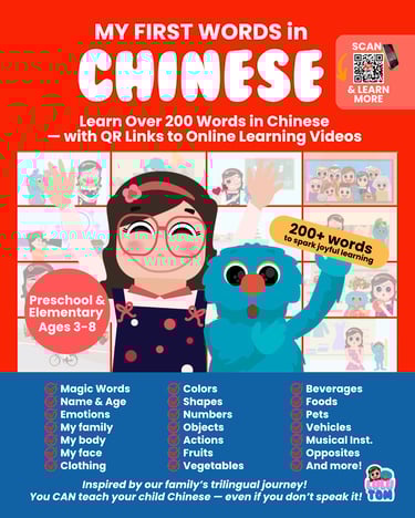 Give your child the gift of words in three languages! This interactive series makes learning fun by helping children expand their vocabulary across exciting themes in English, Spanish, and Chinese. Each book introduces key words from a specific topic, making it easy for kids to recognize, compare, and naturally absorb new words through play and exploration.