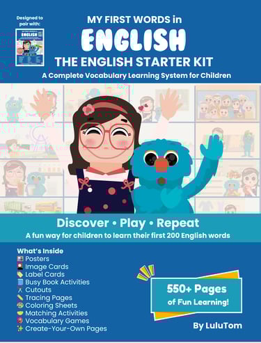 This LuluTom system is designed to grow with your child. Start with the book to build vocabulary, then extend learning through play with the optional companion kit.