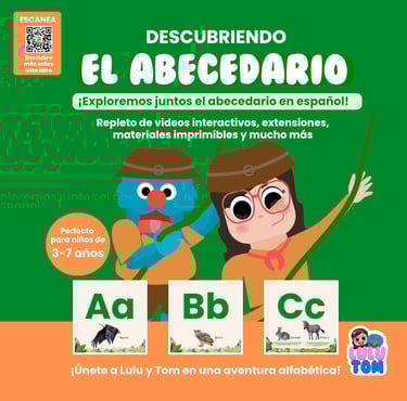 Each, Discover EL ABECEDARIO, book includes a QR code that gives children access to a fun and engaging video lesson on YouTube, where Lulu and Tom teach the letter sounds in an interactive way!