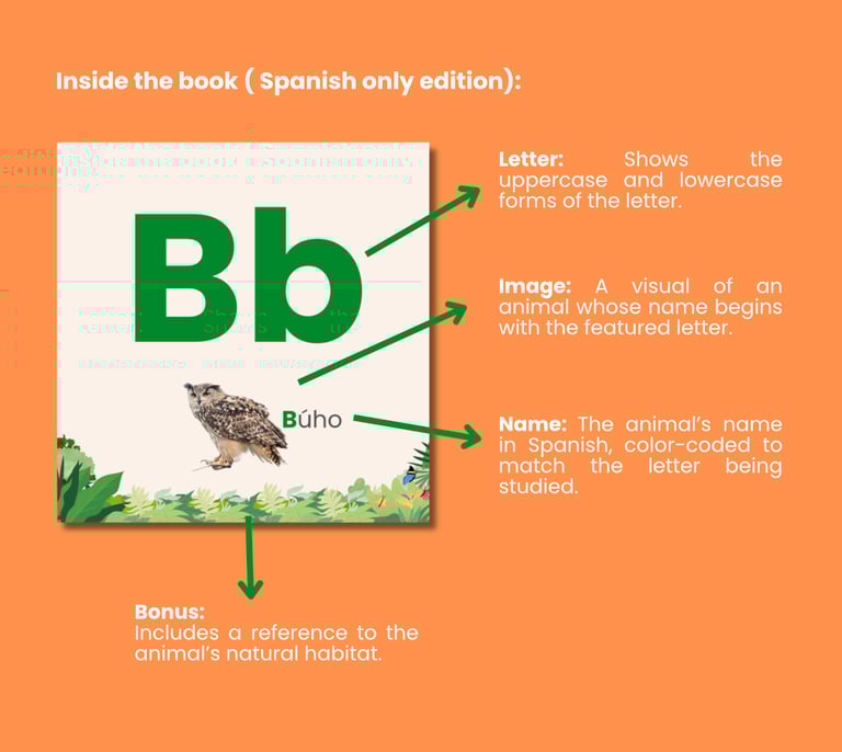 Discovering EL ABECEDARIO comes in two presentations to support different audiences by providing language-specific support to help children and parents better understand Spanish phonics.