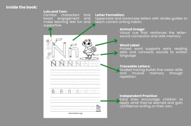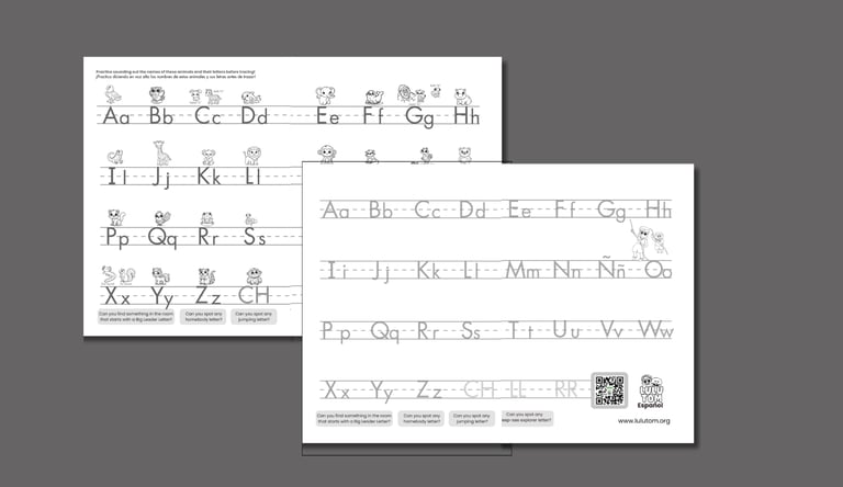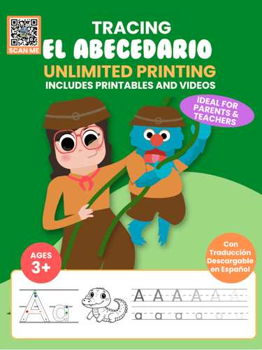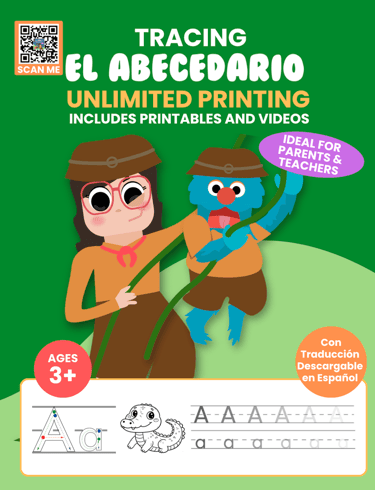Each, Discover EL ABECEDARIO, book includes a QR code that gives children access to a fun and engaging video lesson on YouTube, where Lulu and Tom teach the letter sounds in an interactive way!