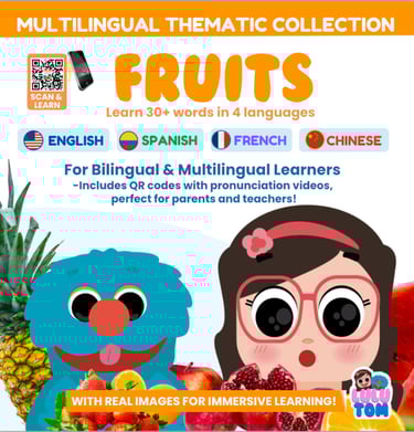 Give your child the gift of words in three languages! This interactive series makes learning fun by helping children expand their vocabulary across exciting themes in English, Spanish, and Chinese. Each book introduces key words from a specific topic, making it easy for kids to recognize, compare, and naturally absorb new words through play and exploration.