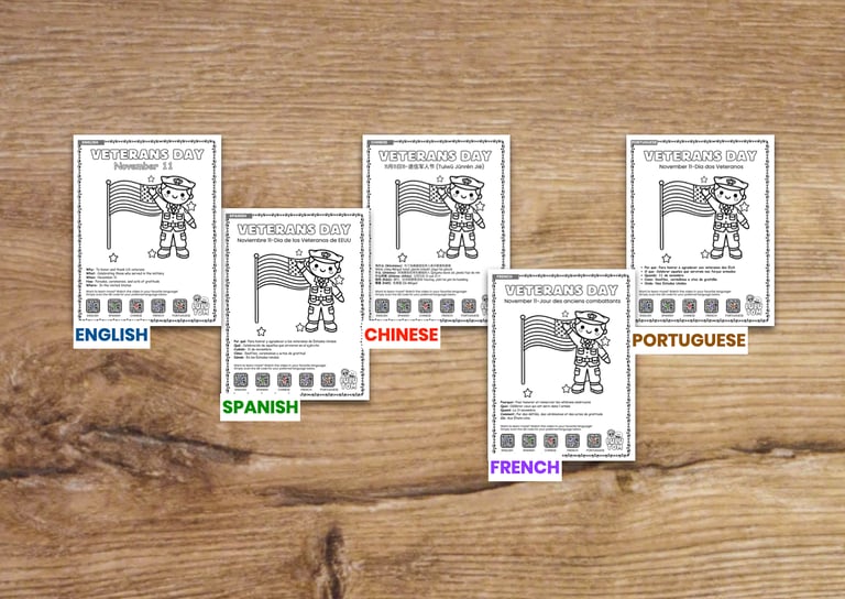 To help bring Veterans Day to life for children, I am excited to share the videos that explains the holiday in a way that’s accessible and engaging. As usual, I have made the video is available in multiple languages, making it perfect for bilingual families or anyone learning a new language. At the end of the video you can see the free printable resource that you can download in any of the Free Resources Language Libraries that includes activities and key points about Veterans Day, ideal for continuing the learning at home or in the classroom.